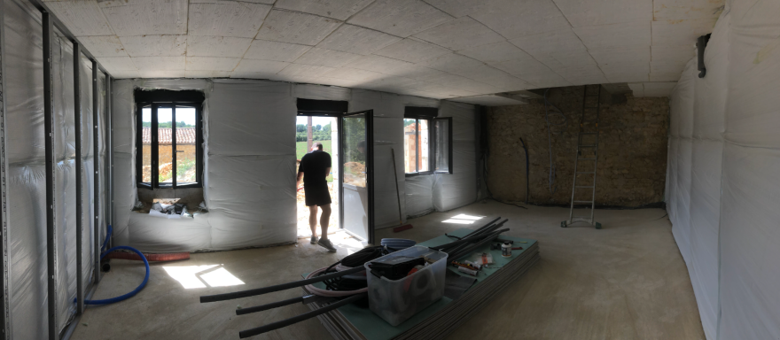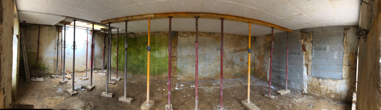 Pour ce joli chantier nous avons gardé les 4 murs, consolidés ces derniers, creusé le sol, puis sublimé l'intérieur pour y réaliser une suite.