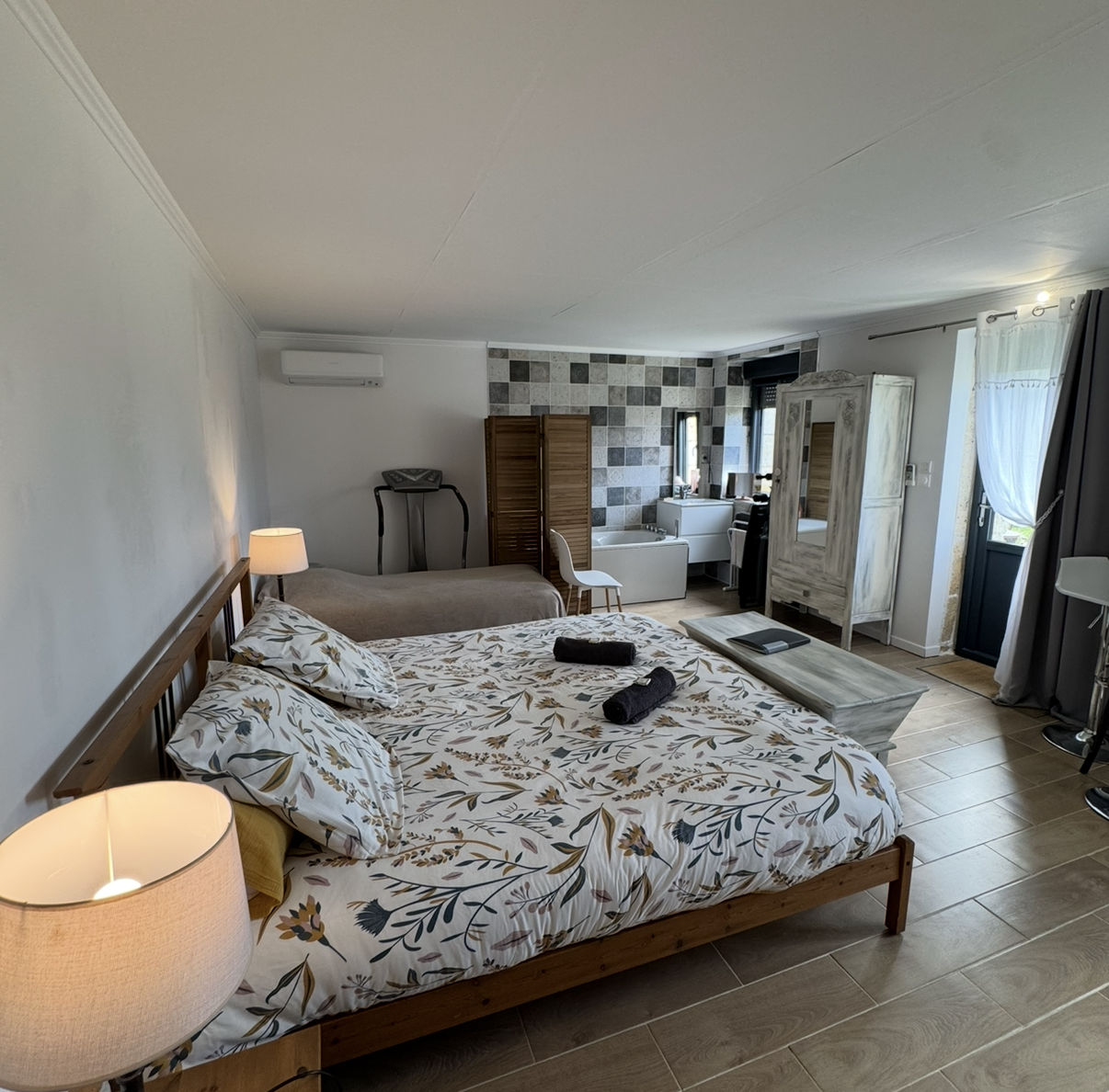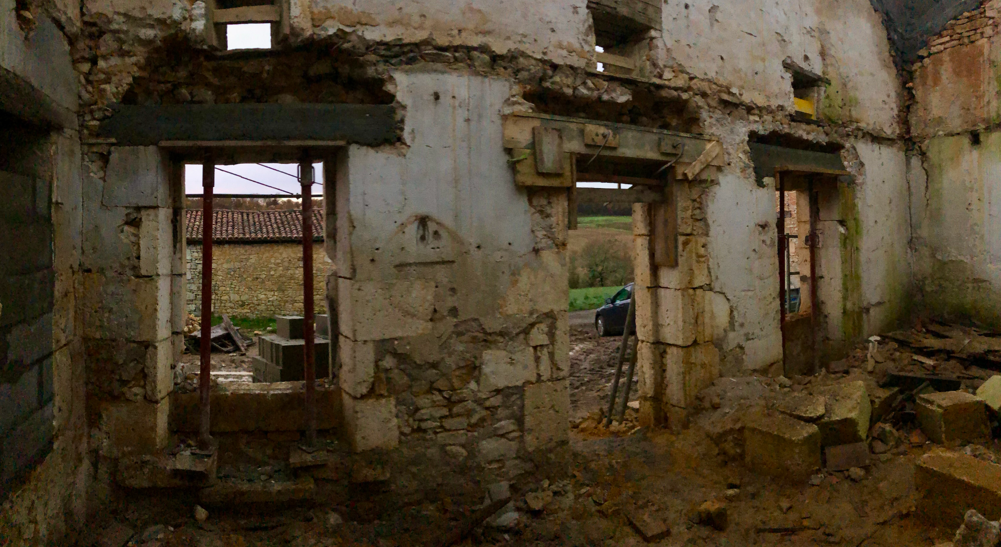 Pour ce joli chantier nous avons gardé les 4 murs, consolidés ces derniers, creusé le sol, puis sublimé l'intérieur pour y réaliser une suite.